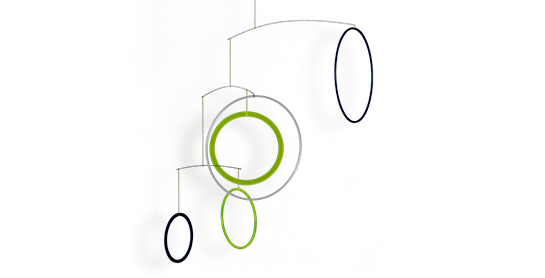 Mobilé – Vicos (Ringe, grün, schwarz, weiß, klein)